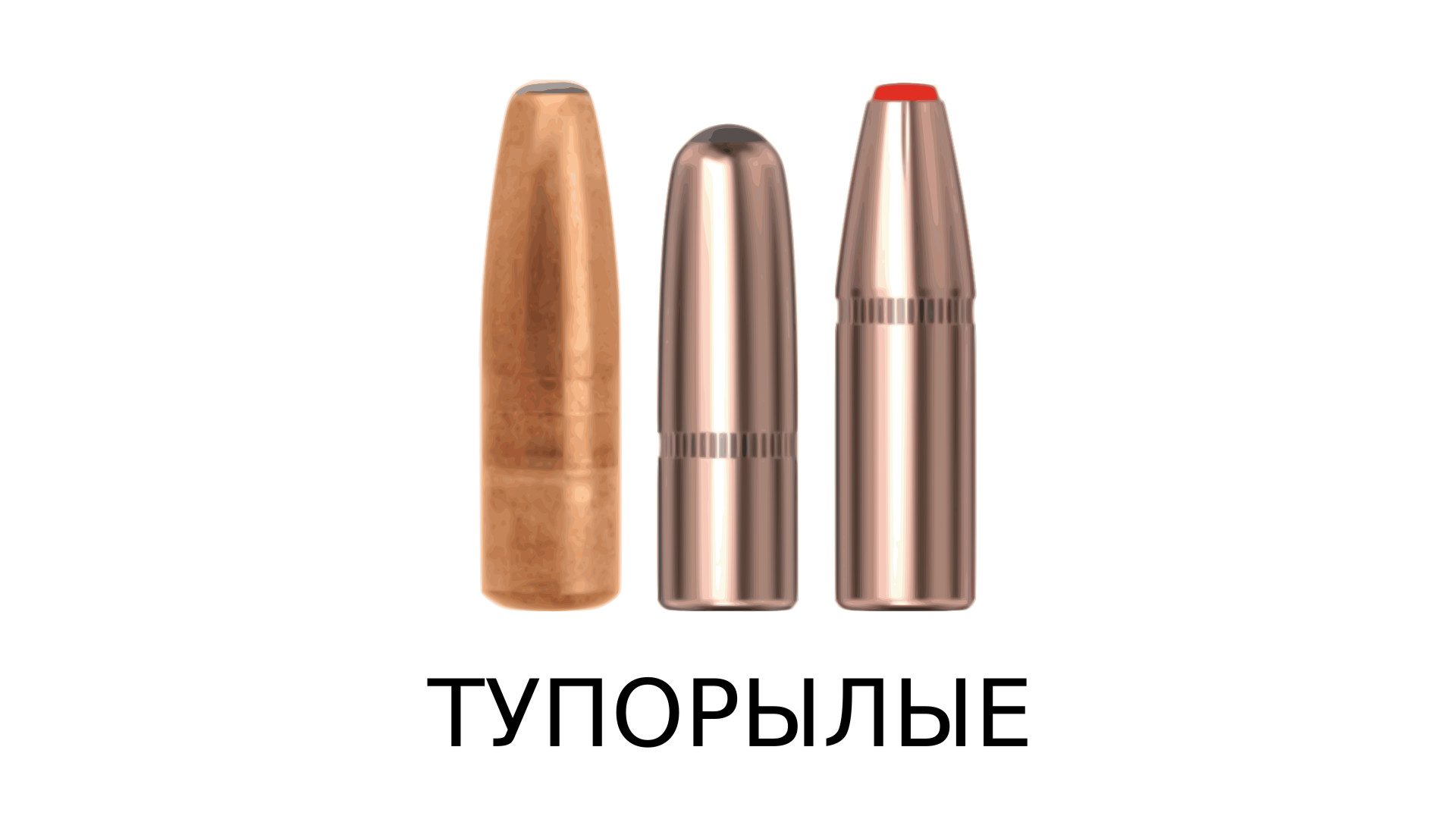 То же относится и к тупоносым охотничьим пулям — носик может быть закрыт рубашкой, а может быть открытым свинцом, с выемкой или без, или с небольшой пластиковой вставкой — разница проявляется в основном когда сообщение доходит до получателя, в разделе терминальной баллистики. С точки зрения же внутренней и внешней баллистики, т. е. всю дорогу по пути к цели, разница, в рамках сегодняшнего разговора — не велика, ведут себя эти пули примерно одинаково.