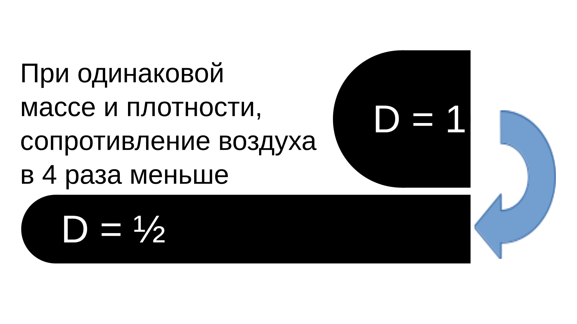 Иными словами, если одно и то же количество некоего материала вместо шарика раскатать в эдакую колбаску, калибр (т. е. площадь сечения) уменьшится, и при прочих равных лететь объект будет значительно эффективнее.