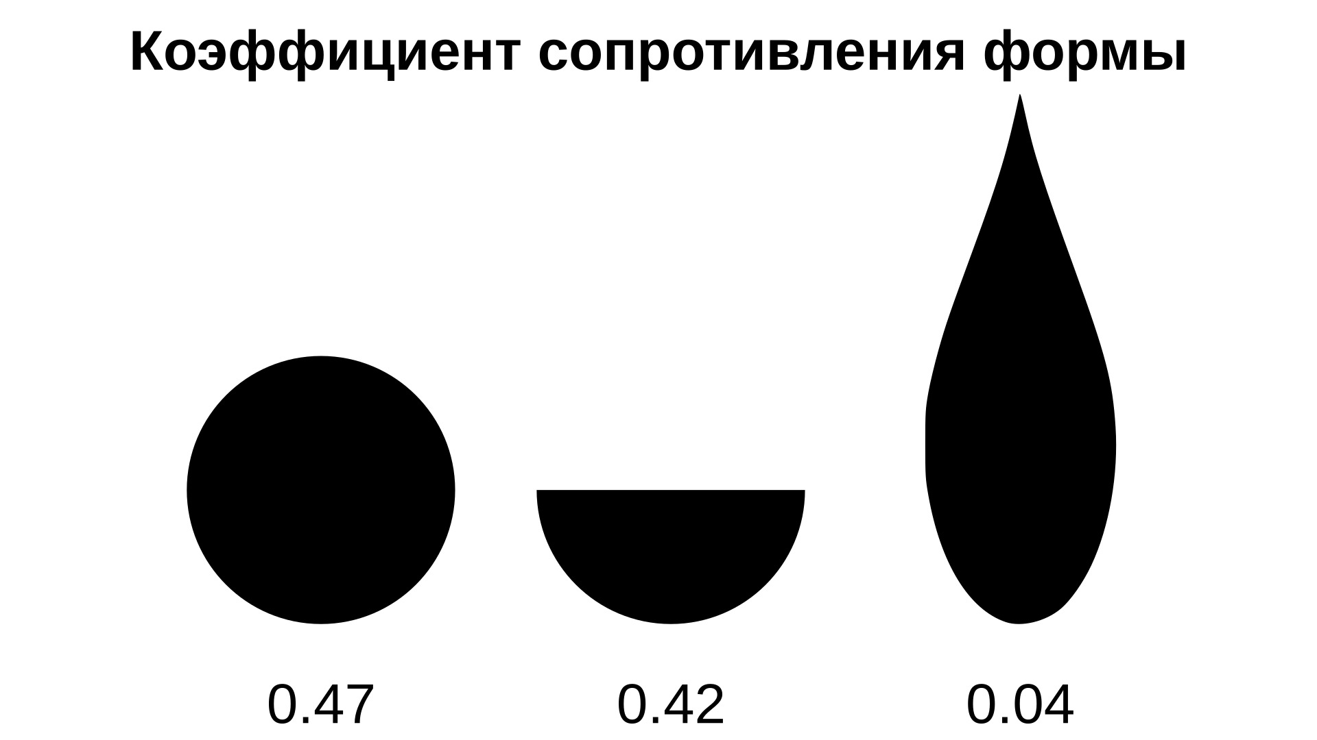 Вот, к примеру. как выглядит коэффициент сопротивления среды для сферы, полусферы, и идеальной (в дозвуковом диапазоне) каплевидной формы. Например, такую форму с годами принимаем мы, роскошные скуфы, для максимально эффективного перемещения в пространстве.
