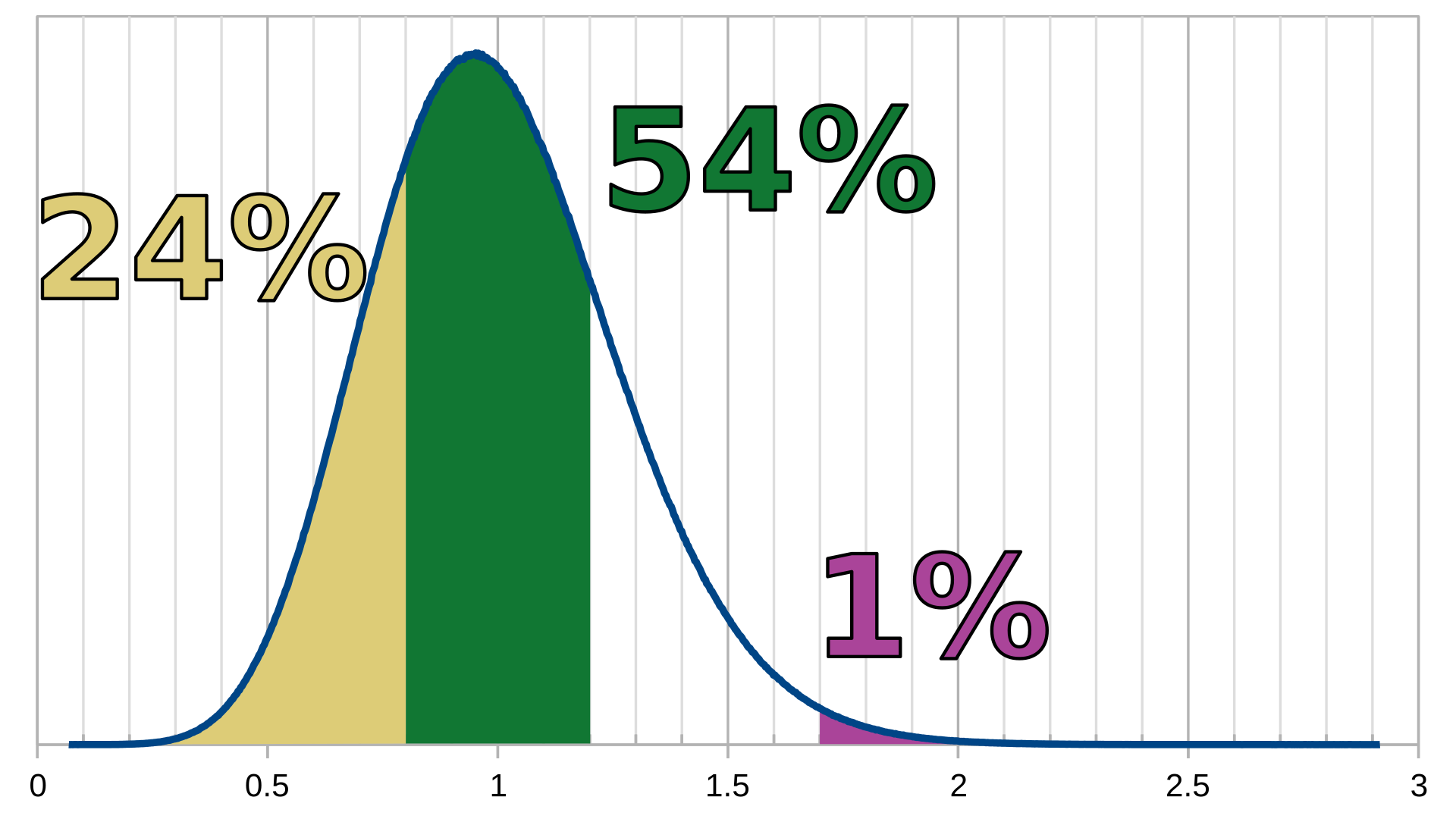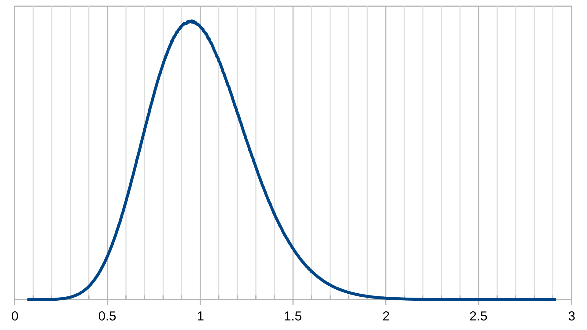 Горизонтальная шкала — собственно поперечник серии, Й. Площадь под графиком между, к примеру, x1 и х2 по шкале Й отображает вероятность того, что поперечник случайной серии попадёт между x1 и x2. Общая площадь под графиком между нулём и плюс бесконечностью равна единице, или 100%.