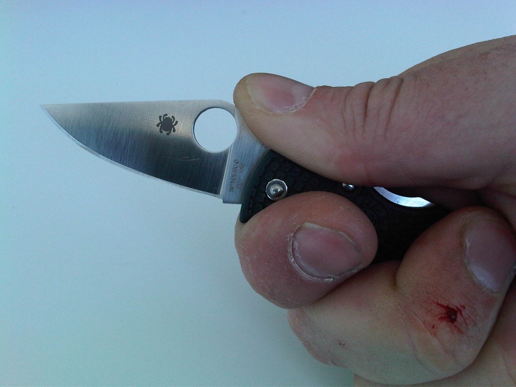 И заточена с завода с остротой, вызывающей уважение. Немедля по извлечении, по лёгкой касательной пропырил сам себе палец, этого не заметил, и минуту спустя был изрядно напуган внезапной лужей кровищи. Складенёк маленький да ёбкий, возомнил себя карликовым кукри, требует, падло, кровавой жертвы.