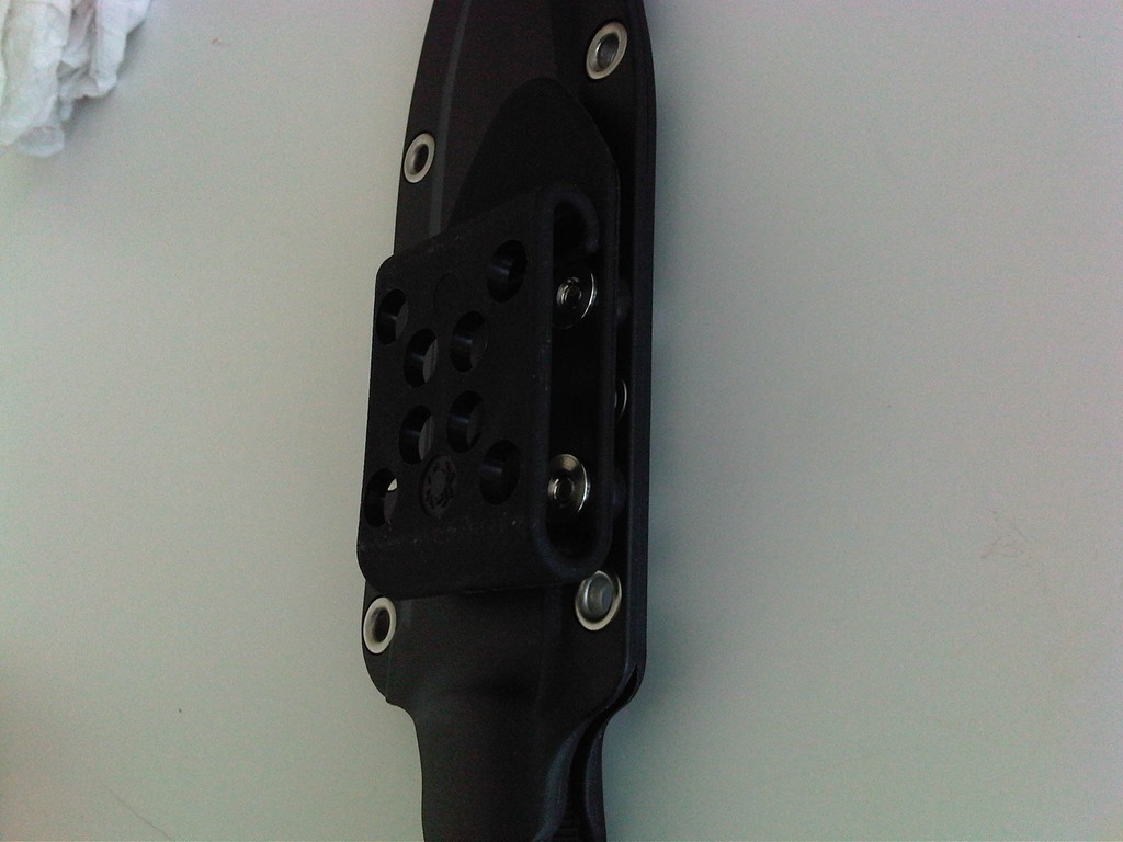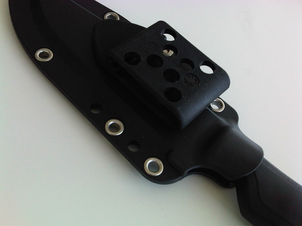 В первоначальном виде на ножнах не было клипсы на ремень, только дырки для паракорда. Клипсу можно запросто свинтить и переставить куда попало чем ни попадя, или просто сложить в загашник, вернувшись к перранову аскетизму.